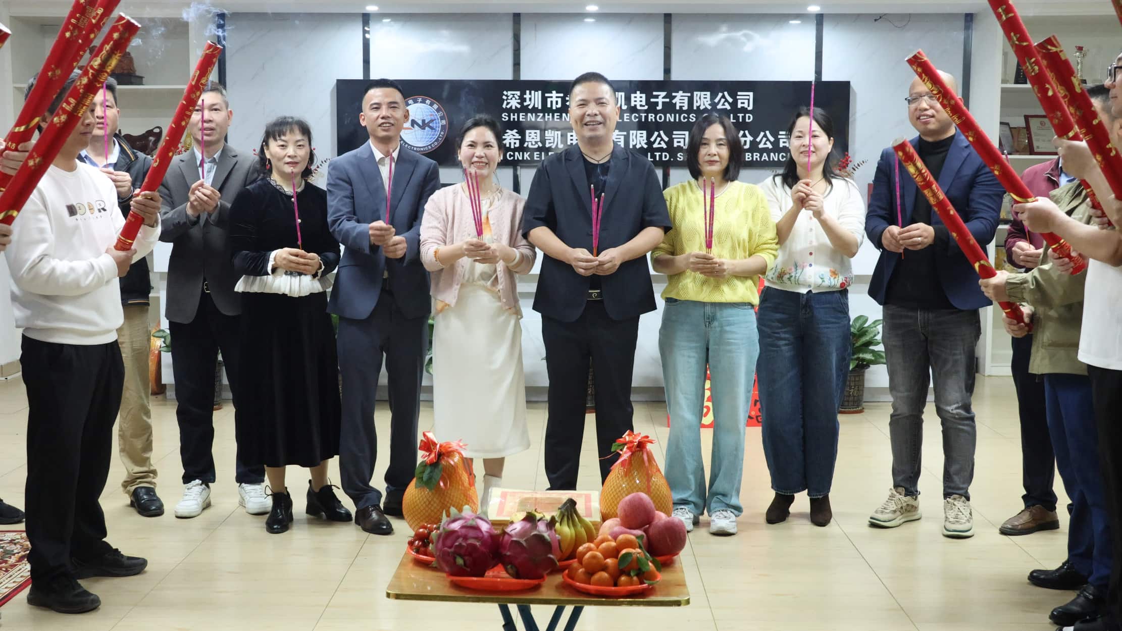 Saat fajar, manajemen puncak perusahaan berkumpul dan memimpin seluruh karyawan untuk mengadakan upacara pembukaan. Asap dupa mengepul dari meja, dan persembahan berlimpah. Hal ini tidak hanya mengungkapkan rasa hormat kami terhadap langit dan bumi tetapi juga menyampaikan harapan tulus dari seluruh karyawan untuk tahun yang sejahtera dengan cuaca yang mendukung dan bisnis yang lancar. Di tengah dupa, para pemimpin mempersembahkan dupa dengan penuh pengabdian, berdoa memohon berkah dan keberuntungan untuk rencana besar perusahaan di tahun baru.