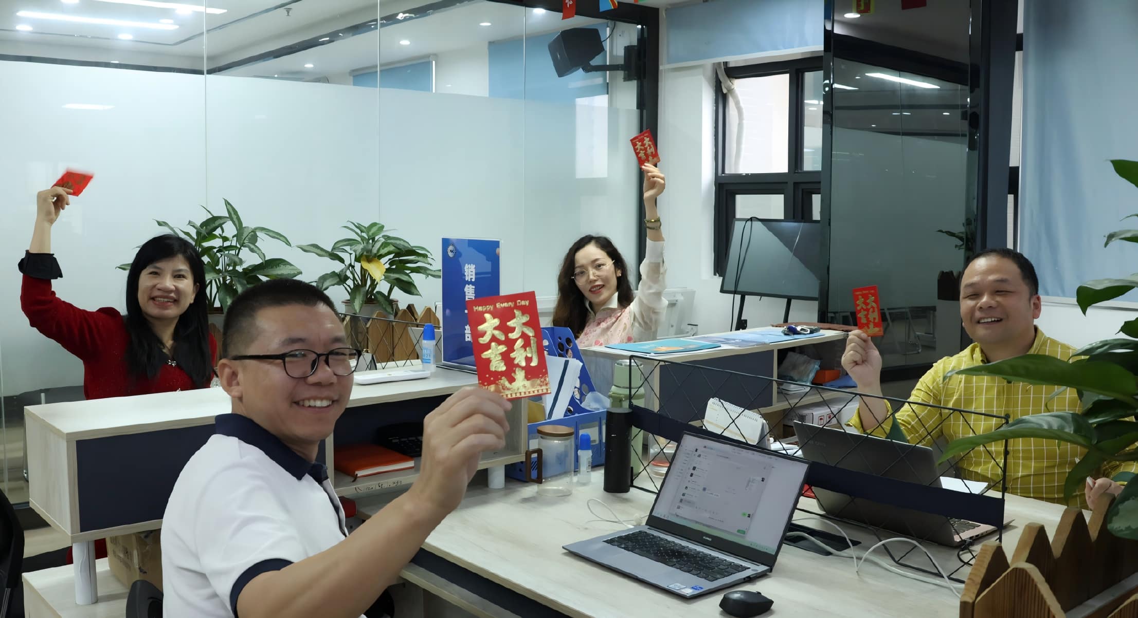 Memulai pekerjaan dengan amplop merah keberuntungan, penuh kegembiraan dan keceriaan.